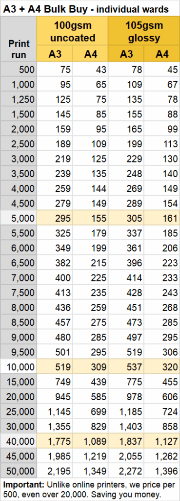 This is a great time to get your next leaflet produced – and this bulk buy will get you a great price.