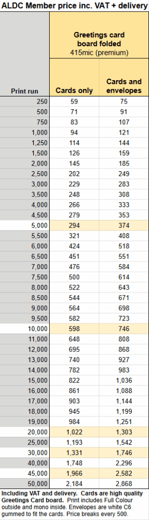 ALDC member discount prices for your Christmas Cards are below. This includes VAT and Delivery. You can order your Christmas cards on their own – or with envelopes. We would always recommend stuffing your cards into envelopes. Just like a normal Christmas Card. This will give them the greatest impact when delivered to residents.