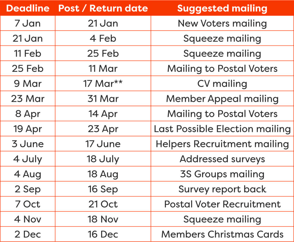 Mailings can either be returned to your local party for hand delivery, or posted directly to voters.