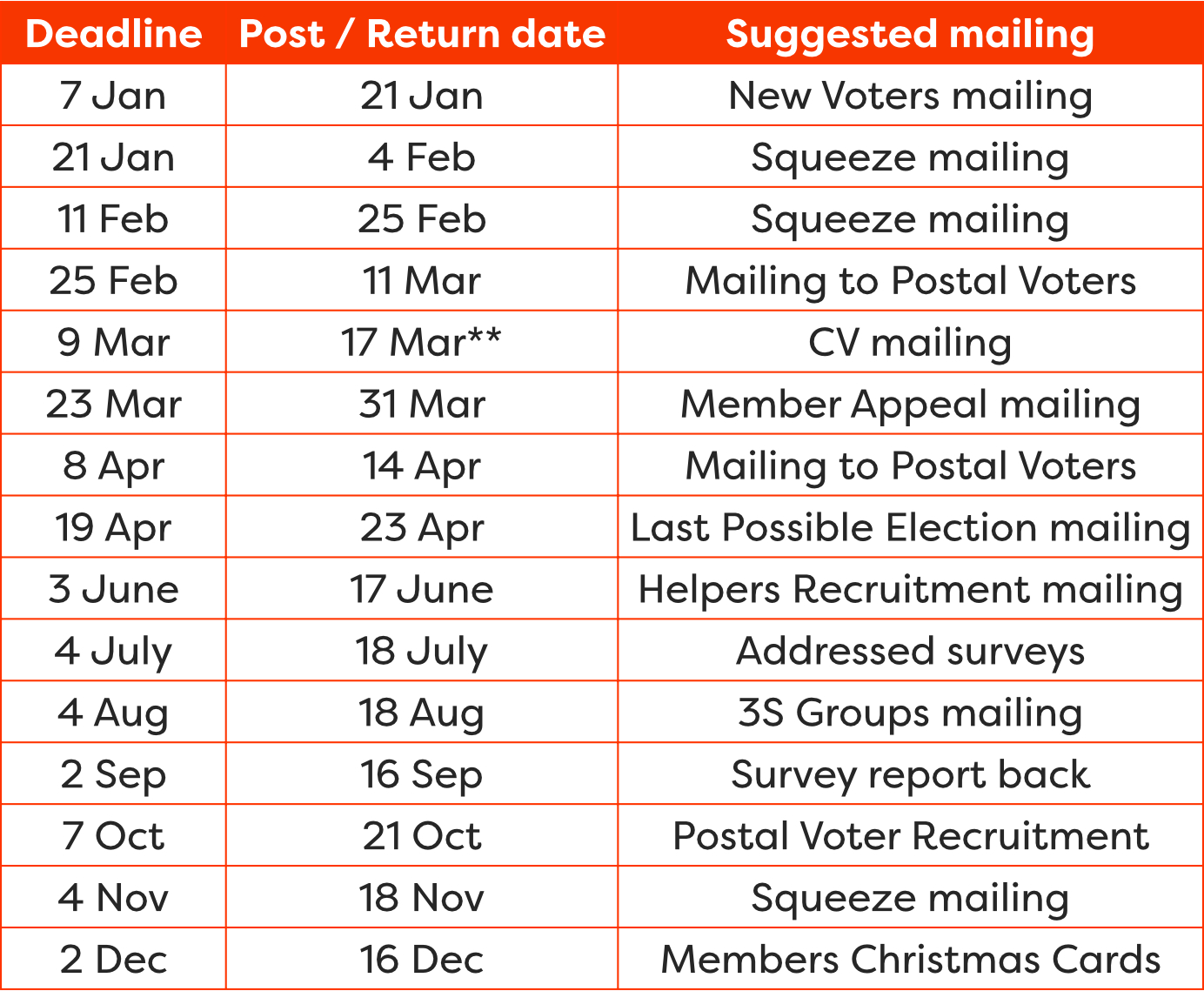Mailings can either be returned to your local party for hand delivery, or posted directly to voters.